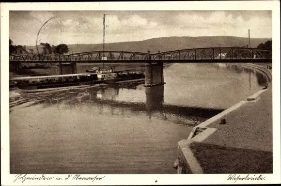 Ak Holzminden an der Weser, Weserbrücke, Weserschiff