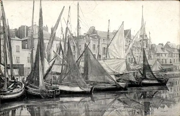 Ansichtskarte, Postkarte, Hafen, Schiffe, Boote, Dampfer, Boot