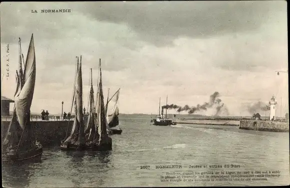 Ak Honfleur Calvados, Jestees et entree du Port, Segelboote, Dampfer