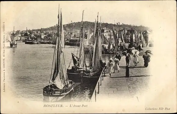 Ak Honfleur Calvados, L'Avant Port, Segelboot