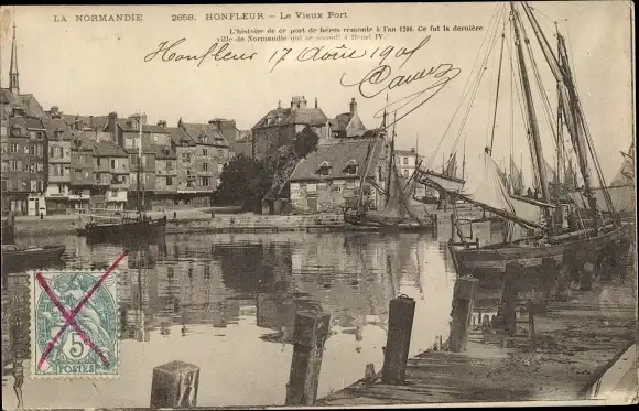 Ak Honfleur Calvados, Le Vieux Port, Segelboot