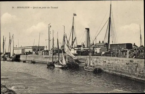 Ak Honfleur Calvados, Quai ou jetée du Transit