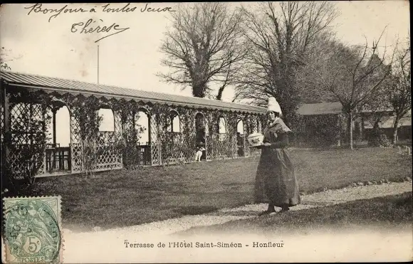 Ak Honfleur Calvados, Terrasse de l'Hotel Saint Simeon
