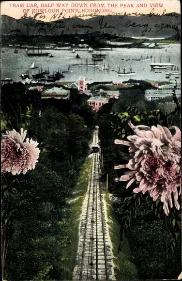 Ak Hong Kong China, Bahnstrecke zum Hafen