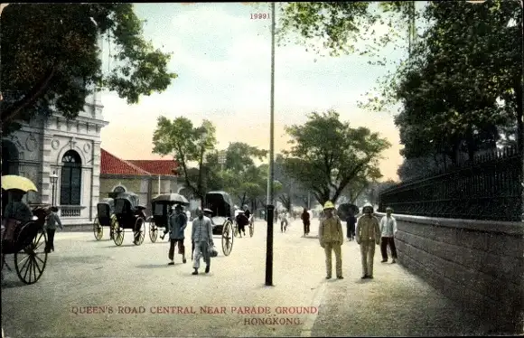 Ak Hong Kong China, Straßenansicht, Rikschas