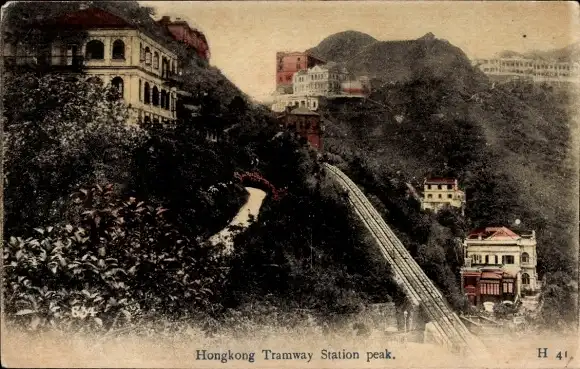 Ak Hongkong China, Straßenbahnhaltestelle Peak
