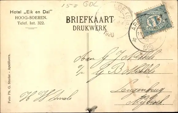 Zustand, siehe Scan, gelaufen, 1920 - ca 14 cm X 9 cm