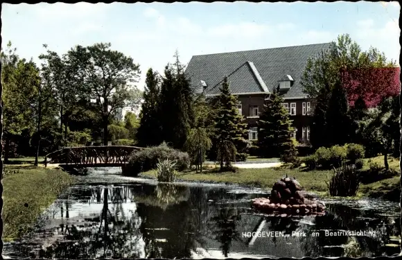 Ak Hoogeveen Drenthe, Park en Beatrixstichting, Brücke