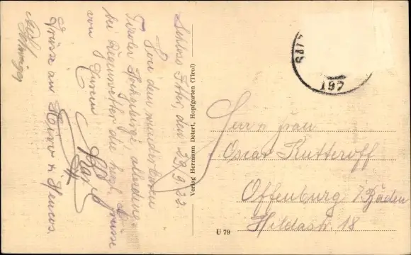 Zustand, siehe Scan, gelaufen, 1922 - ca 14 cm X 9 cm