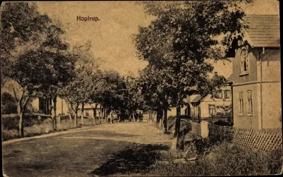 Ak Hoptrup Dänemark, Straßenpartie im Ort, Wohnhäuser