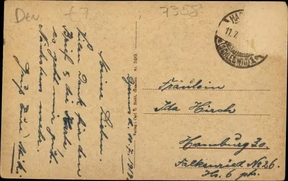 gelaufen 1919, Briefmarke entfernt, Eckknicke, sonst guter Zustand
