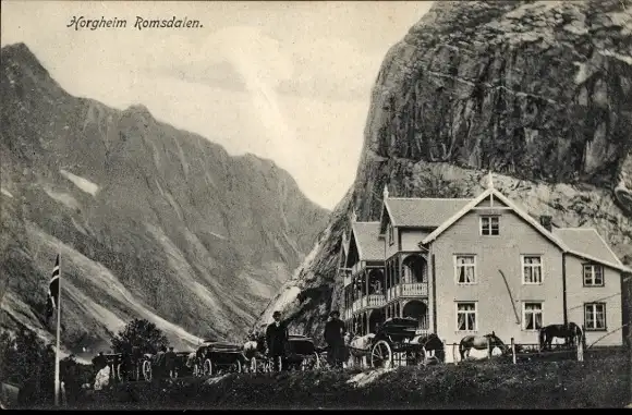 Ak Horgheim Romsdalen Norwegen, Wohnhaus, Fuhrwerk