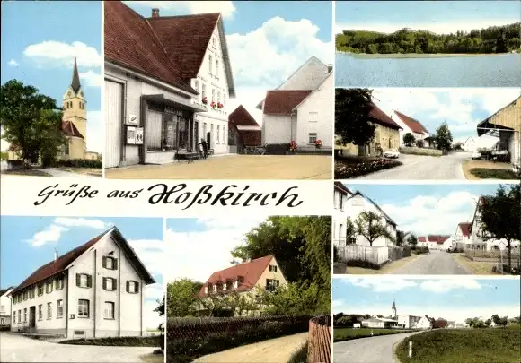 Ak Hoßkirch Baden Württemberg, Ortsansichten, Straße, Häuser, Kirche