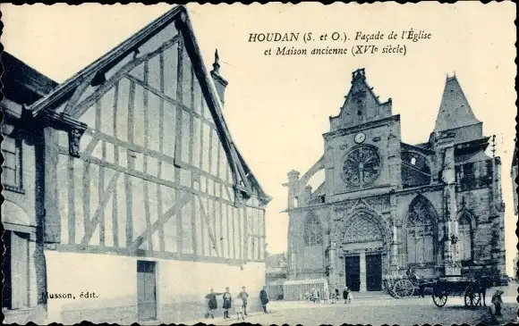 Ak Houdan Yvelines, Facade de l´Eglise et Maison ancienne