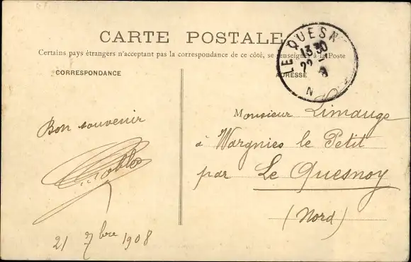 Zustand, siehe Scan, gelaufen, 1908 - ca 14 cm X 9 cm