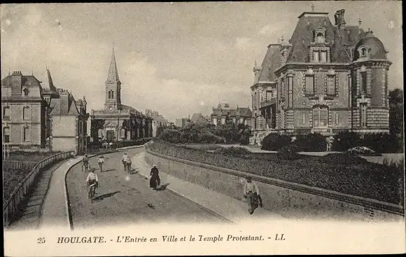Ak Houlgate Calvados, L'Entree en Ville et le Temple Protestant