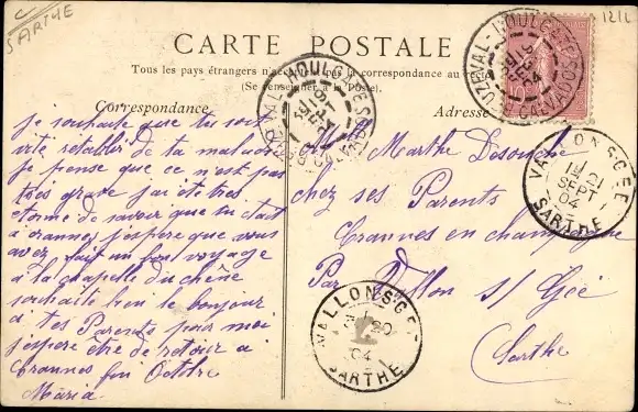 Zustand, siehe Scan, gelaufen, 1904 - ca 9 cm X 14 cm