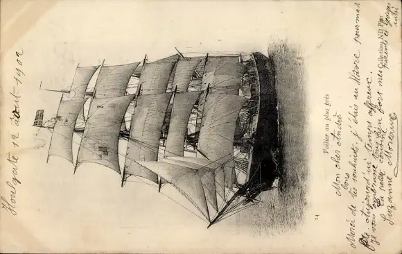 Ak Houlgate Calvados, Segelschiff, das bei starkem Wind segelt