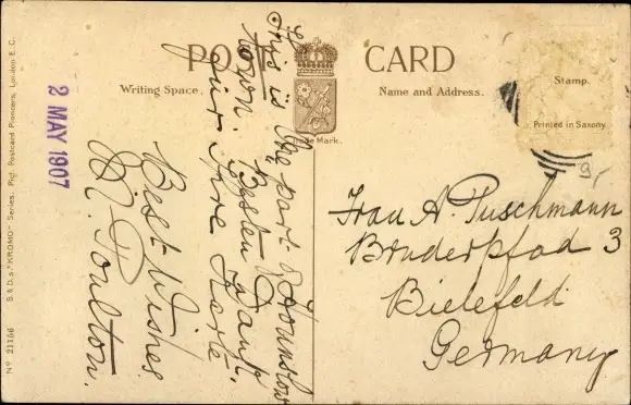 Zustand, siehe Scan, gelaufen, 1907 - ca 14 cm X 9 cm