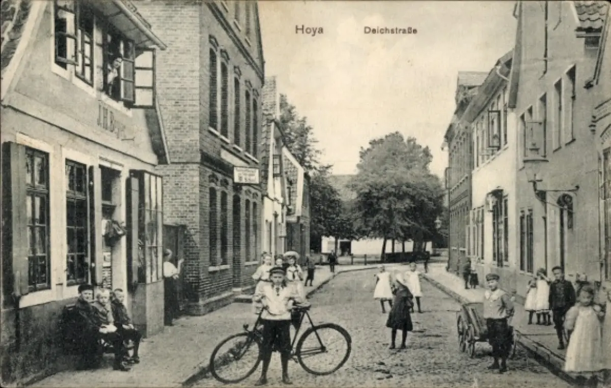 Ak Hoya an der Weser, Deichstraße, Kinder mit Fahrrad