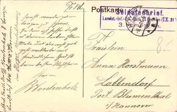 Zustand, siehe Scan, gelaufen, 1916 - ca 14 cm X 9 cm