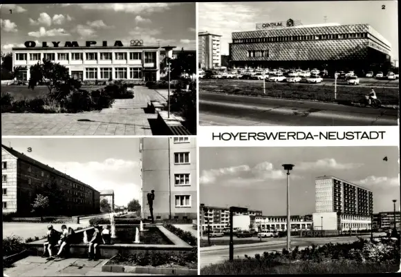 Ak Hoyerswerda in der Oberlausitz, HO Gaststätte Olympia, Centrum, Springbrunnen Wohnkomplex 1