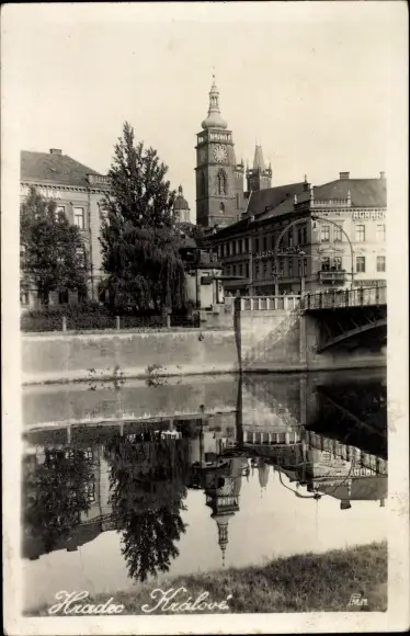 Ak Hradec Králové Königgrätz Stadt, Teilansicht mit Brücke