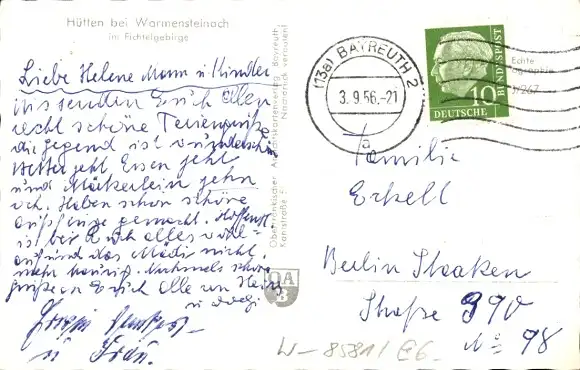 Zustand, siehe Scan, gelaufen, 1956 - ca 14 cm X 9 cm