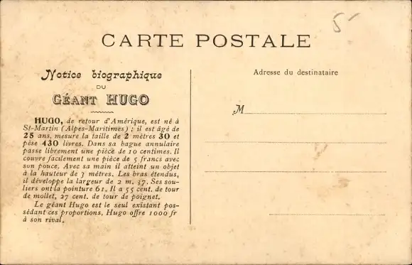 Ak Hugo le plus grand des Geants existant sur terre, Riese