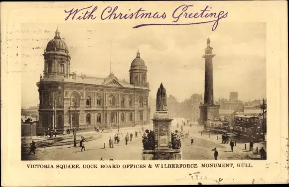 Ak Hull Yorkshire, Victoria Square, Dock Board Offices and Wilberforce Monument