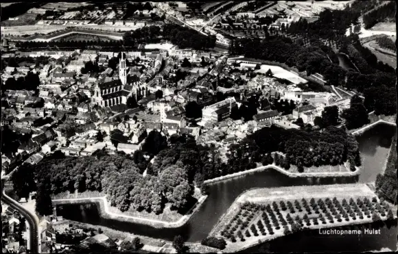 Ak Hulst Zeeland Niederlande, Luftaufnahme, Ortszentrum, Festungsanlagen