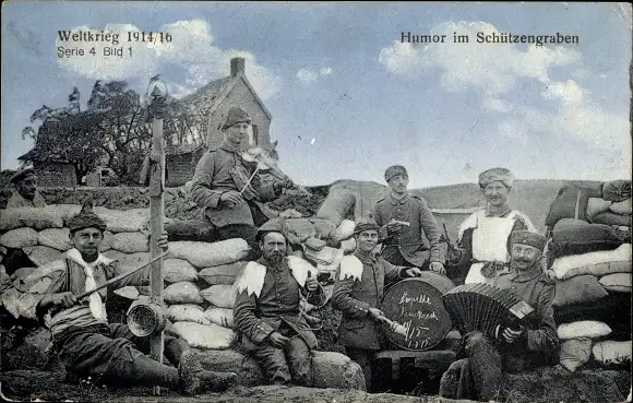 Ak Humor im Schützengraben, Deutsche Soldaten in Uniformen, I WK