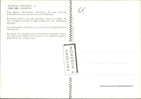 Ak Humorist Coluche, Portrait, Sternzeichen Skorpion, Scorpio, 24. Oktober bis 22. November