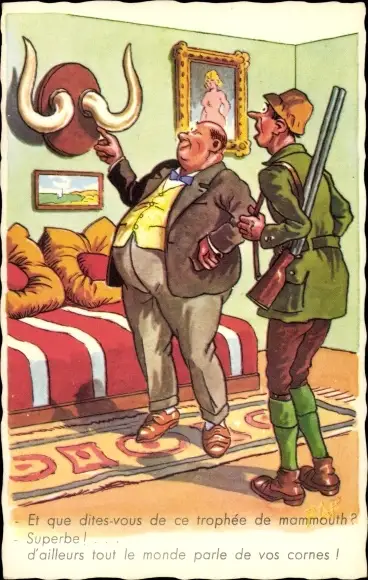 Ak Humot, Mann zeigt Jäger seine Trophäen