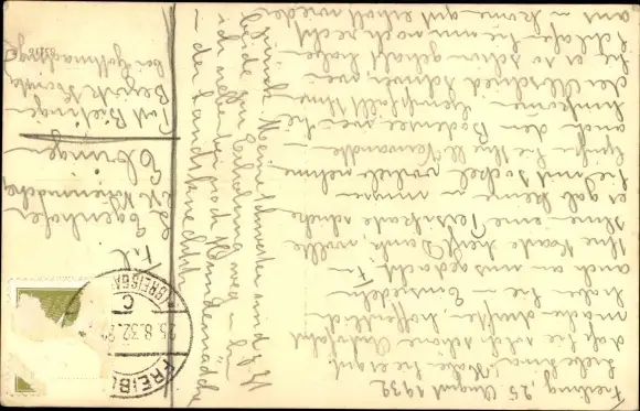 gelaufen 1932, Briefmarke teilw. entfernt, fleckig, sonst guter Zustand