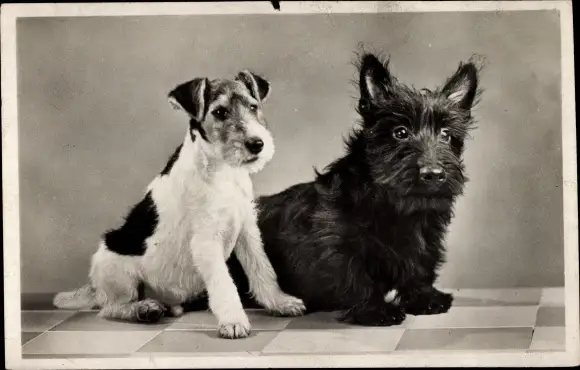 Ak Hundeportrait, zwei Terrier