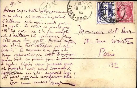 Zustand, siehe Scan, gelaufen, 1945- Amag 37 - ca 14 cm X 9 cm