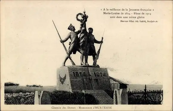 Ak Hurtebise Aisne, Chemin des Dames, Monument