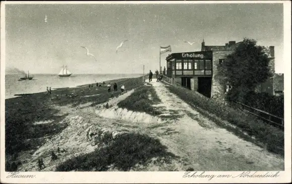 Ak Husum in Nordfriesland, Erholung am Nordseedeich