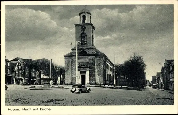 Ak Husum in Nordfriesland, Markt mit Kirche