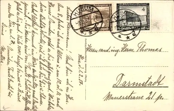 Zustand, siehe Scan, gelaufen, 1937 - ca 14 cm X 9 cm