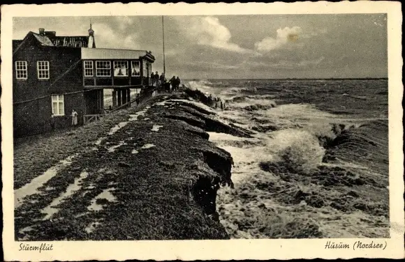 Ak Husum in Nordfriesland, Sturmflut am Seedeich