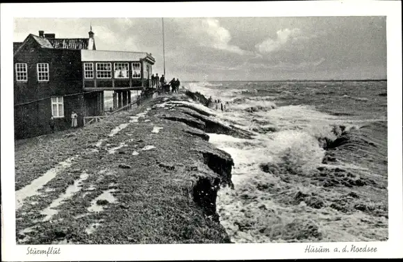 Ak Husum in Nordfriesland, Sturmflut am Seedeich