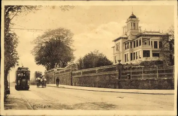 Ak Hvidøre Dänemark, Straßenpartie, Straßenbahn