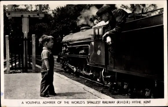 Ak Hythe Kent England, a youthful admirer of the worl's smallest Railway