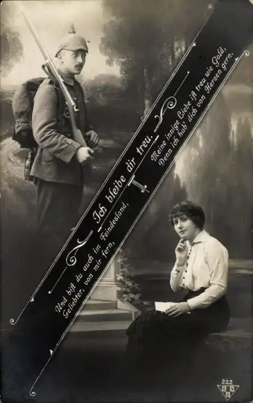 Ak Ich bleibe dir treu, Liebespaar, Soldat in Uniform