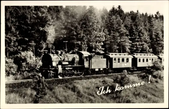 Ak Ich komme, Deutsche Eisenbahn, Dampflok in voller Fahrt
