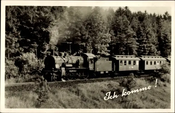 Ak Ich komme, Eisenbahn auf der Strecke, Dampflokomotive