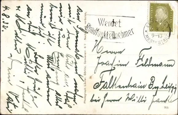 Zustand, siehe Scan, gelaufen, 1932 - ca 9 cm X 14 cm