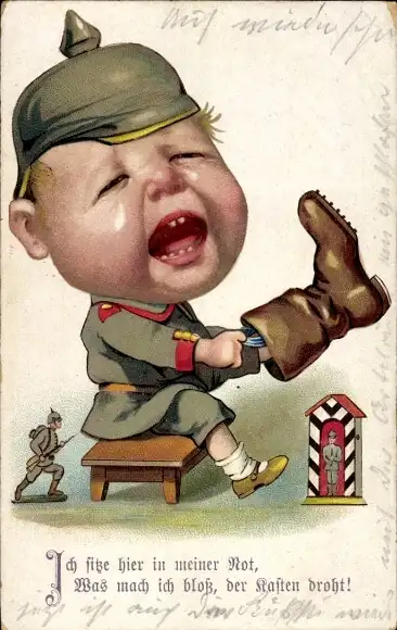 Ak Ich sitze hier in meiner Not, weinender Junge in Uniform, Stiefel